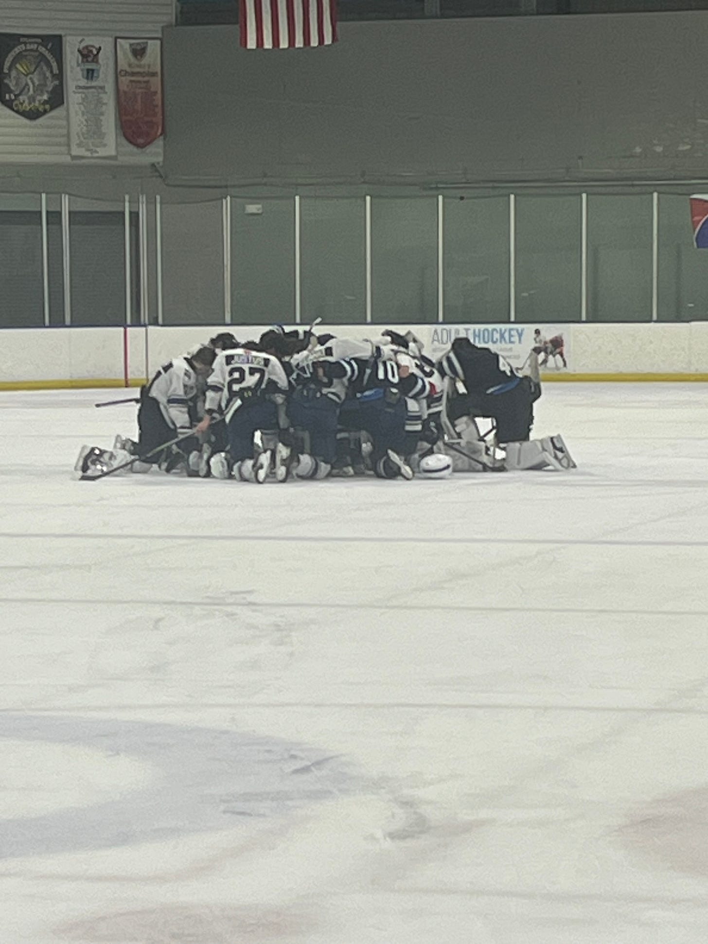 The game continued on, a little less chaotic. In the end, it was still a weird vibe. Our team had so many penalties that our coach was suspended for the following game (a USA Hockey rule). At one point, there were four of our guys in the penalty box.